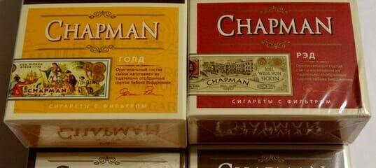 Недавно на российском табачном рынке появился новый представитель – это немецкие сигареты Чапман. Они пока еще не завоевали большую аудиторию, однако уже имеют много положительных отзывов. Что это такое? Chapman – это сигареты с фильтром как в обычном формате, так и в виде тонких сигарет. Они изготавливаются в Германии на заводе Von Eiken. Сигареты выпускаются в твердой упаковке с острыми углами. Сама пачка достаточно прочная и не мнется со временем. Сам табак завернут в бумагу коричневого цвета. Затем идет золотистое кольцо, разделяющее табак и фильтр светло-бежевого оттенка. Так выглядят все виды сигарет Chapman. Этот бренд преимущественно ароматизированный. Сам вкус создается благодаря добавкам в фильтре, а не в табаке. Сигареты достаточно некрепкие и сделаны из качественных материалов. Какие есть виды и вкусы? Всего выпускается 4 вида сигарет Chapman: Классик, Голд, Рэд и Браун. Без вкусовых добавок только один – Классик. Остальные виды отличаются ароматизаторами. Классик Это