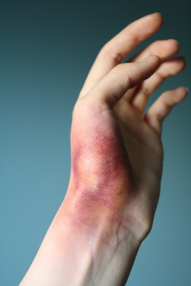 Проведите обручальным кольцом три раза вдоль и поперек места ушиба и произнесите:«Секу, рассекаю и запрещаю. Аминь.»