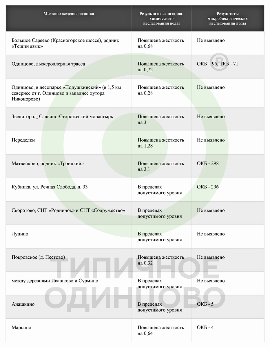 Администрация Одинцовского городского округа информирует о результатах мониторинга воды родников, расположенных в границах округа в 2019 году. Что такое ОКБ и ТКБ