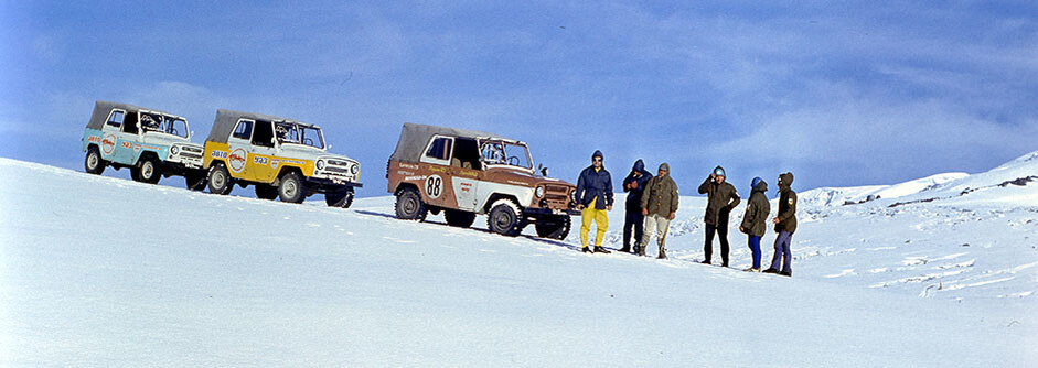 Первый автомобиль, покоривший Эльбрус. В августе 1974 года три абсолютно стандартных (без лебедок и противобуксовочных цепей) автомобиля УАЗ-469Б поднялись по серпантинному склону Эльбруса на высоту 4200 метров над уровнем моря. Чистое время подъема составило всего 38 минут.