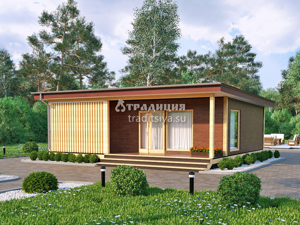 Одноэтажный каркасный дом, несмотря на его относительно небольшие размеры, может комфортно разместиться небольшой семье: в нем предусмотрены две спальни, полноценный санузел, тамбур, который отсекает поток холодного воздуха в зимнее время, просторная общественная зона, объединяющая кухню-гостиную. Большая терраса, предназначена для отдыха и трапез на свежем воздухе, добавляет комфорта и украшает архитектуру дома. Кухня-гостиная с панорамным остеклением обращена окнами к видовой части участка. Подробнее: https://traditsiya.su/projects/i-075