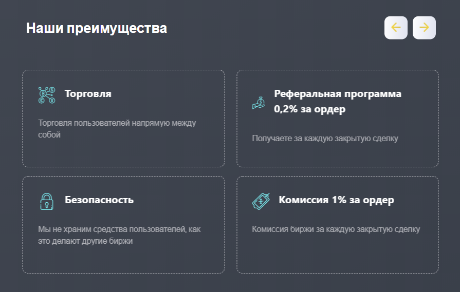 Это P2P криптовалютная биржа, которая дает возможность торговать пользователям напрямую между собой.Биржа выступает как гарант проведения сделки при помощи депонирования - Multisignature/эскроу, помимо этого пользователь позволяет создавать свою заявку с более выгодным курсом. https://paytezos.com/ https://ttttt.me/paytezos