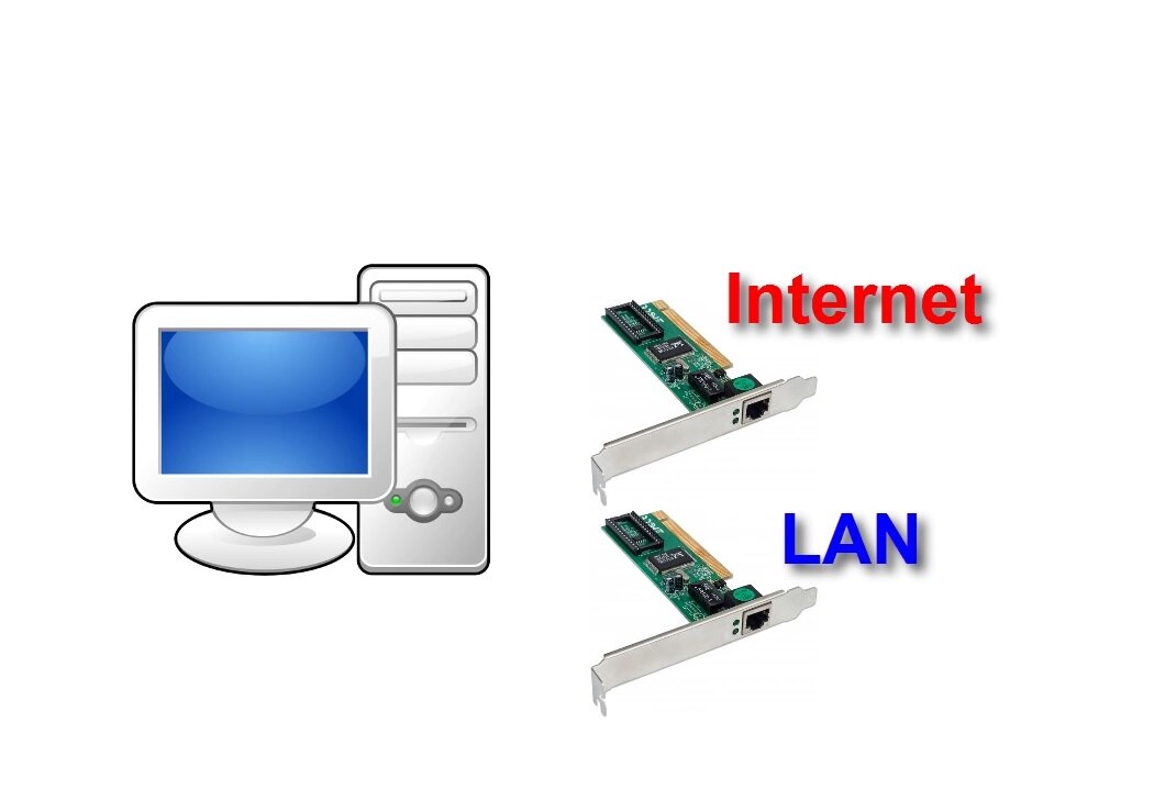Рассмотрим два варианта позволяющих создать небольшую локальную сеть с доступом в интернет. Первый вариант. Заключается в том, что один из компьютеров будущей локальной сети будет выступать в качестве интернет-шлюза. На него необходимо установить две сетевые карты, конечно они могут быть уже интегрированы в материнскую плату. В таком случае на одну карту будет приходить интернет, а вторая раздавать его внутри локальной сети по средствам коммутатора. Для сетевой карты которая принимает интернет необходимо выполнить настройки. В этом случае в операционной системе Windows следует перейти в "Пуск"-"Панель управления"-"Сеть и интернет"-"Сетевые подключения" и выбрать карту которая будет осуществлять раздачу интернета в локальную сеть. Кликнув на ней правой клавишей мыши выбрав «Свойства» и перейдя на вкладку «Доступ» активировать пункт «Разрешить доступ пользователям сети использовать подключение к Интернету данного компьютера» и применить сделанные изменения. На карте которая будет