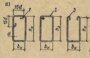Второй очень распространённый тип хомута применяется в большинстве балок и колонн, не воспринимающих скручивающие нагрузки.