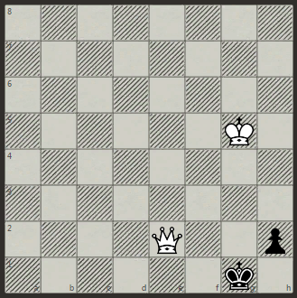 Очередная шахматная задача. Черной пешке один ход до ферзя и, казалось бы, белым можно соглашаться на ничью. Однако белые начинают и выигрывают.