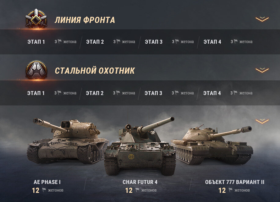 Старт намечен на март 2020. 1. AE Phase I США, ТТ-9, акционный, механика: «встроенный расходник» Большой ремкомплект) — универсальная машина, способная самостоятельно выполнять большинство задач в бою. Её сильные стороны: комфортное орудие с неплохим уроном в минуту, хорошее бронирование лба башни и отличные углы вертикальной наводки. Этот тяжёлый танк имеет встроенный бесплатный Большой ремкомплект, который занимает один слот на панели снаряжения машины. 2. Объект 777 Вариант II СССР, ТТ-9, акционный) — долгострой выкатили всё же. Портвейн.