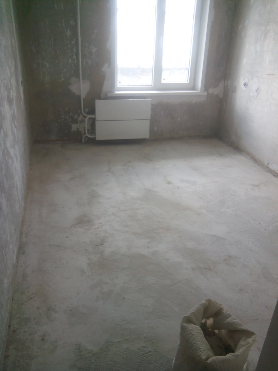 Многим людям знакома ситуация, когда полы в квартире или в доме неровные. Прежде чем стелить ламинат или паркет необходимо выровнять основание. Отличным решением в случае, если полы бетонные и перепады небольшие (1-5 см), будет устройство наливных полов. В этой статье мы расскажем Вам как правильно сделать наливной пол своими руками и выровнять основание (не забудьте поставить лайк и подписаться на канал, впереди Вас будет ждать ещё много советов и хитростей по ремонту). Итак, пошаговая инструкция: 1. Демонтируем старое покрытие, убираем пыль. В нашем случае дом панельный. Комната 11,5 м2. Плиты перекрытия - железобетонные круглопустотные. 2. Нужно оценить неровности пола визуально и при больших перепадах отбить часть старой стяжки. После демонтажа линолеума визуально и с помощью уровня было обнаружено, что по плитам перекрытия устроена крайне неровная стяжка. Было принято решение удалить бугры по углам зубилом с молотком. Примечание: если есть большие трещины, то их нужно замазать