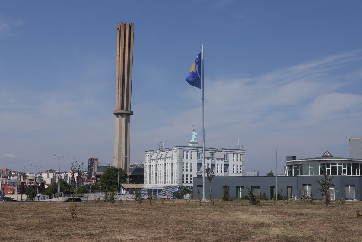 Город Приштина, она же Prishtinё - столица частично признанного государства Косово. Вообще, надо сказать, что в Косово, а особенно в Приштину, очень хорошо так вложились. Особого трэша и жести тут не видно, даже сама Албания выглядит куда запущеннее. Приштина сверкает огнями и глянцем - куча дорогих машин, торговых центров, моллов с парковками, дорогие рестораны, банки, клубы. Пешеходная улочка, полная тусующейся молодёжи, огромный стадион с прожекторами, освещающими параллельно ещё и пол-города.. Зато концентрация американских флагов и символов тут такая, что вряд ли где ещё встречается в мире кроме самих США и, возможно, ассоциированных с ними государств (типа Маршалловых островов или Пуэрто-Рико). Улица Билла Клинтона, копия статуя Статуи Свободы, памятник при жизни самому Клинтону. И что это, как не простая человеческая благодарность? Когда сильнейшее государство в мире ради тебя, ради такого малозаметного на карте образования соглашается на грубейшее нарушение всех между