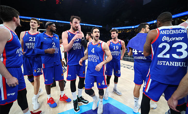«Анадолу Эфес» (21-3) с уверенным отрывом лидирует в регулярном чемпионате. «Реал» и «Барселона» отстают на три победы, ЦСКА и «Маккаби» — на пять. С вероятностью 99% команда Эргина Атамана станет первой по итогам 34-х туров. «Эфес» – текущий лидер Евролиги по точности двухочковых (57,04%), трехочковых (41,63%), командному рейтингу эффективности (103,5 балла), а также второй по результативности (87,1 очка). Проще говоря, «Эфес» — самая доминирующая команда Евролиги.