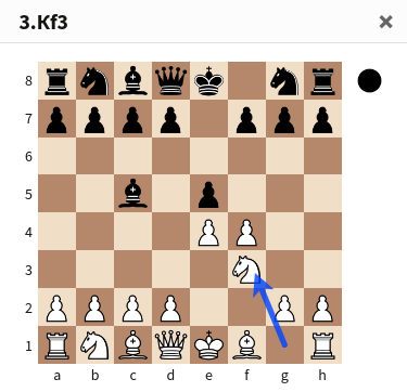 Вновь партия по переписке, закончившаяся на восьмом ходу. "Зевнуть" ладью, при неспешном размышлении, по сути без ограничения времени - это тайны человеческой психики - человек не компьютер, он играет по-другому. Blassneck — Wolf, Cor, 1987 Подобные выпады ферзей, особенно чёрного на h4 нередки в королевском гамбите и на нервы действуют изрядно, особенно тех, кто королевский гамбит обошёл внимание в ходе своего шахматного образования. Сейчас на одной горизонтали с белым ферзём слон чёрных и витает угроза открытого удара. Чёрные реагируют вполне здраво: Но следующий ход белых, видимо, был для чёрных сюрпризом: Если забрать наглого коня, то у белых "маленькое качестов" - два слона при полной свободе их действий. Посчитав, что на это их и хотели подловить, чёрные не повелись и стали выбирать между 6... Кf6 и 6 ... g6 Решив, что весь замысел белых в открытом ударе по слону, видимо чёрные решили, что белые "зевнули" коня, поэтому сыграли по второму варианту: и получают ответ: здесь чёрные