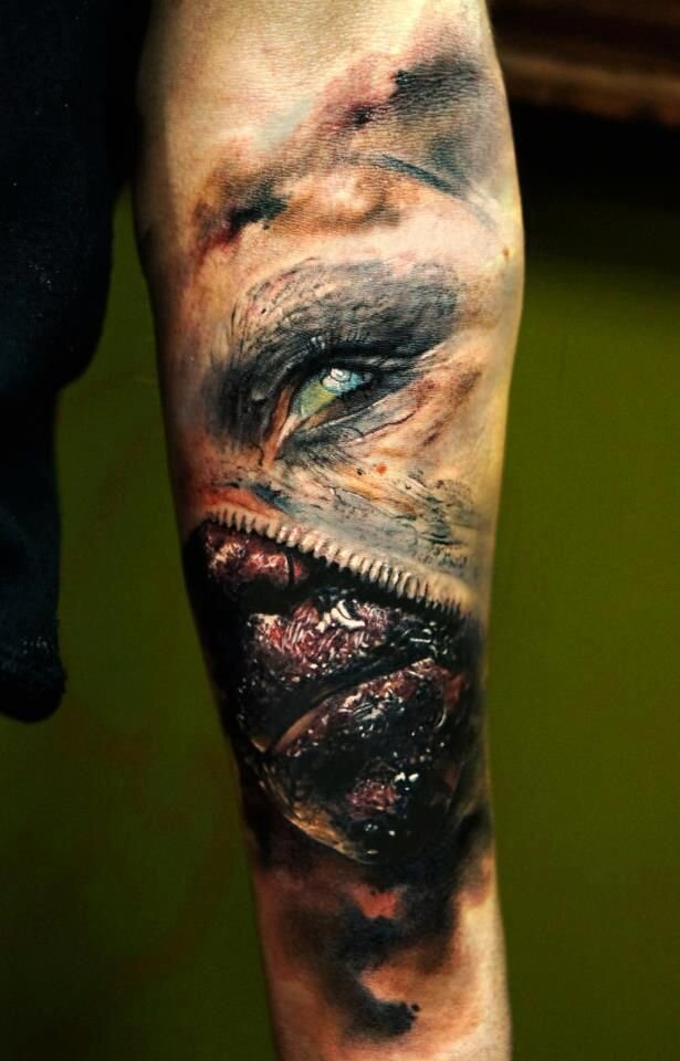 Большие тату в стиле "реализм" смотрится очень круто и в тоже время жутко... Особенно на всю спину или живот...