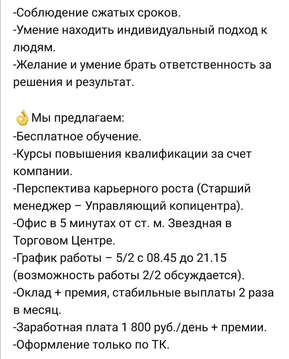 Наткнулась сегодня на объявление о вакансии в СПБ. Приведу его полностью, за исключением адреса и контактов (не хочу рекламировать организацию, вдруг я отстала от жизни и такие вакансии расхватываются, как горячие пирожки в моей предыдущей статье) "Менеджер копицентра (оператор печати) от 37 800 до 50 000 руб. до вычета налогов Обязанности: -Расчет стоимости заказа. -Копирование, Сканирование, Ламинирование, Брошюровка. -Печать на цифровой машине. -Знание постпечатной обработки (резка, изготовление календарей, резка визиток, буклетов, брошюр). -Фотопечать, изготовление фото на документы. -Внесение изменений в макеты заказчика. -Создание новых макетов. -Подготовка макетов к печати. -Знание материалов. Требования: -Опыт работы в копицентре, фотоателье, полиграфии, производстве сувениров или смежных сферах обязателен. -Умение работать в программах: Adobe Photoshop, Adobe Illustrator или CorelDraw обязательно. -Соблюдение сжатых сроков. -Умение находить индивидуальный подход к людям. -Жел