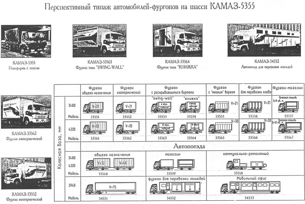 Видите эту страничку из рекламного буклета? Вот такими среднетоннажные КАМАЗы могли бы стать еще в конце 1990-х годов. Однако это семейство по сути так и осталось прожектом, а настоящими на "фото" в буклете были всего два грузовика. Тема среднетоннажного КАМАЗа возникла еще в 1994 году, причем не на самом автогиганте, а на дочерней фирме РИАТ. Ее конструкторы задались целью спроектировать низкорамный грузовик для внутригородской работы, рассчитанный на доставку 6 тонн груза. Первый опытный образец такой машины, получившей марку РИАТ-КАМАЗ-5355, построили к декабрю 1995 года.