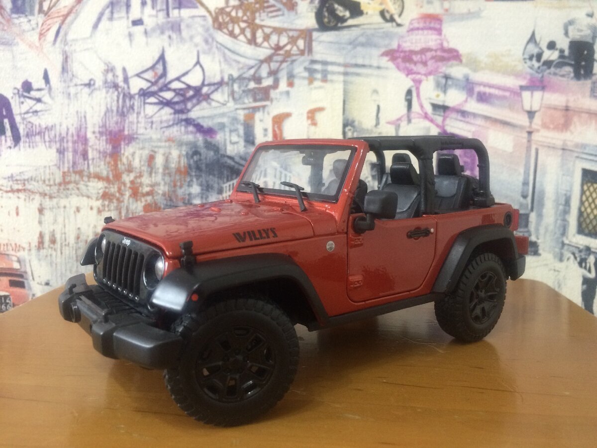 Привет. Хочу немного рассказать о модели, подаренной мне друзьями. Когда я увидел этого красавца в коробке мне сразу стало ясно, что это качественная и очень копийная модель. Я не ошибся. Действительно, сборка и уровень детализации на высоте. Давайте рассмотрим авто подробнее. Здесь представлен Jeep Wrangler Willys образца 2014 года. Модель произведена в Китае. Производитель Maisto. Про этого производителя я раньше ничего не знал. Немного погуглив я нашел информацию о нём: "Maisto International Inc. является всемирно продаваемым игрушечным брендом. Штаб-квартира бренда находится в Калифорнии, его истоки и основная компания сегодня находятся в Гонконге. Maisto в основном производит литые модели автомобилей, самолетов и мотоциклов. Модели имеют почти идеально пропорциональные тела и обычно имеют превосходно проработанные детали, учитывая, что модели серийно производятся сотнями тысяч." Габаритные размеры модели примерно: 22 см - длина; 10 см - ширина и 10 см - высота. Диаметр кол