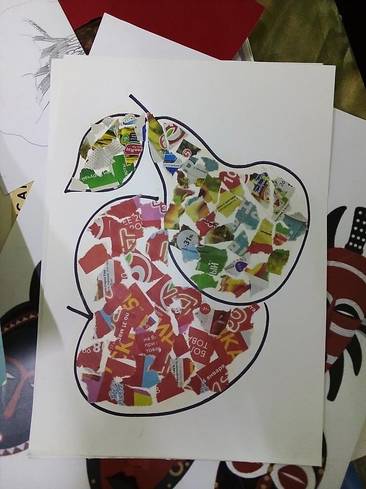 Когда я первый раз увидела, как ЭТИМ занимаются. Ничего не поняла. Пока не попробовала сама... Люди, не тратьте деньги на пазлы детям!))) А тем более на ругань расшалившегося ребенка. Лучше отвлечь. Привлечь за стол и утихомирить часа на полтора, как нечего делать. К ночи ближе – особенно эффективно. Итак. Берете старый рекламный каталог или глянцевый журнал. Со множеством рекламы. Рисуете, как можете, контур груши, яблока на листе из альбома или принтера,- неважно. Можно грузовика с большим кузовом, смотря по возрасту. И отрываете кусочек 1см на 1см нужного цвета от платья рекламной красотки и отправляете внутрь контура нарисованного объекта, намазав место для него клеящим карандашом. И пошла гулять Ивановская…. Ну, конечно, приговариваем… Вот бочок будет розовый, неспелое у нас яблоко сбоку. Дай кусочек зеленого, у меня листик от груши. А у автобуса борт какой? Красный? Рви красный кусочек. Давай, ты будешь рвать, а я наклею. Или наоборот… Ребята, мозг пятилетн