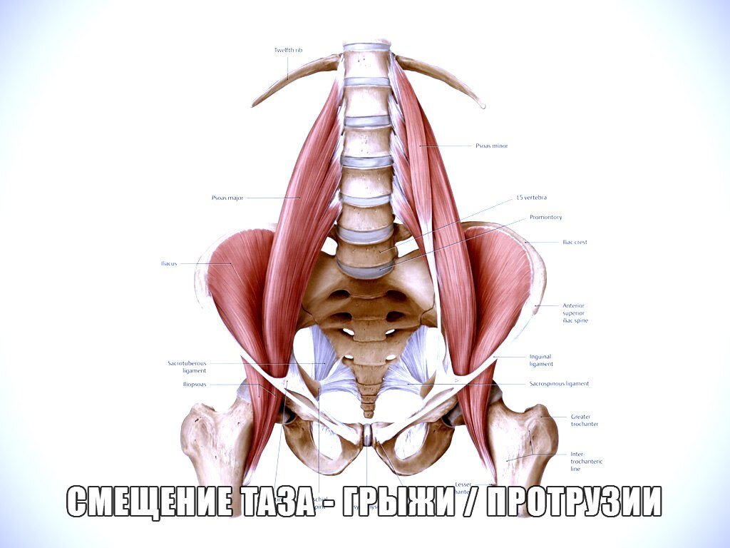 Смещение таза вперед может быть вызвано дисбалансом поясничной мышцы, которая анатомически может привести к экстензии и флексии бедра.