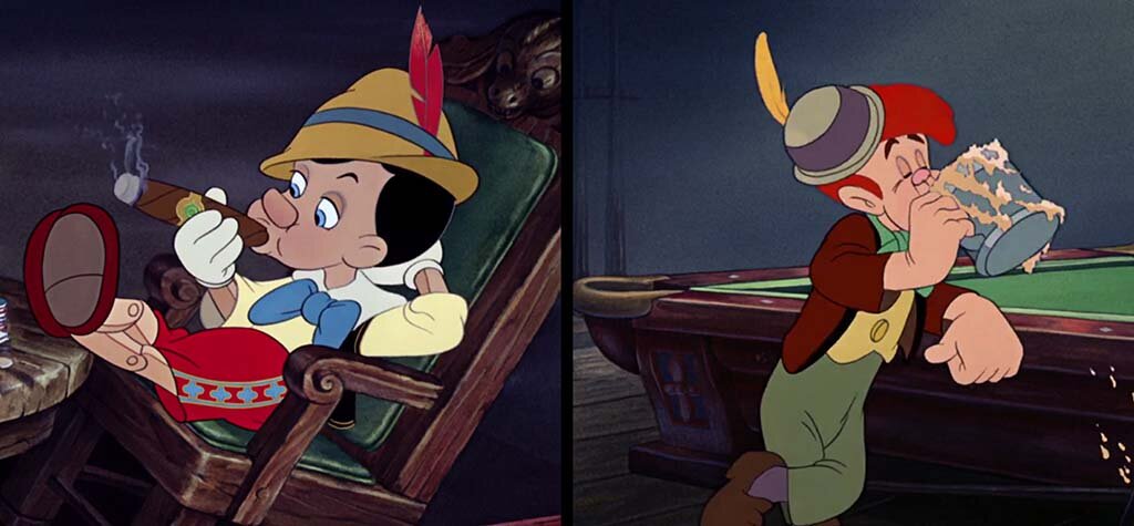 В «Дамбо» главный герой пьет пиво , но в отличии с прошлым героем , эта сцена былая необязательной , то есть можно было обойтись без нее