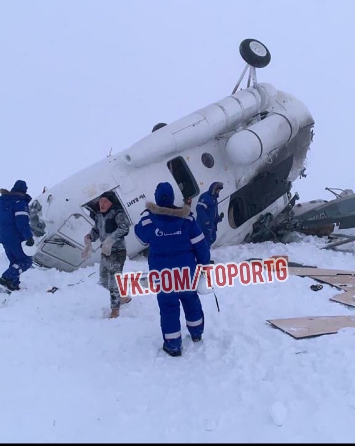 В ямальских ебенях, куда ещё не ступала нога человека, есть посёлок Сабетта. Как-то раз Одмен там бывал и с уверенностью утверждает, что кроме снега, холода и пары нефтяных вышек там нет, ровным счётом, нихуя. И здесь вертолёт Ми-8 не смог приземлиться из-за сильной метели, упав прямо на пропеллер. Восьмерым работягам и одному пилоту удалось выбраться, а вот ещё двоим членам экипажа press F to pay respect.