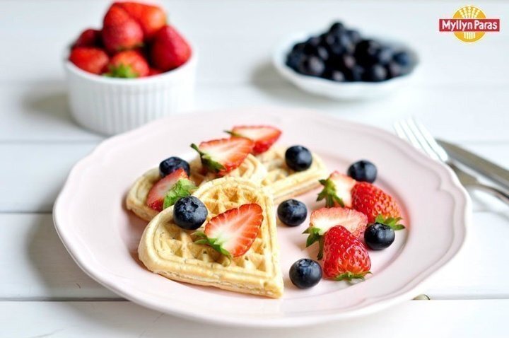 Waffle - слово английское, а сама выпечка родом из Бельгии. Вафли представляют собой листовое тесто запеченное в специальной форме. Овсяные вафли богаты белками и витаминами и являются очень популярным десертом. Myllyn Paras рекомендует добавлять овсянку, которая богата клетчаткой и способствует пищеварению, к вафлям. Овсяные вафли идеально подходят для завтрака или напитков. Ешьте с любимыми фруктами, медом, шоколадным соусом, сиропом. Даже с орехами и двумя ложками мороженого, очень вкусно! Подготовьте ингредиенты: Запаситесь любимыми ягодами. Яйца, соль, сахар и молоко хорошо перемешайте в большом контейнере. Просейте муку с разрыхлителем и всыпьте Овсяные хлопья Myllyn Paras. Перемешайте. Добавьте масло. Продолжайте перемешивать до однородности. Вафельницу смажьте нужным количеством масла после прогрева. (Без вафельницы используйте сковородку.) Налейте тесто в вафельницу, не слишком много, потому что тесто будет набухать во время нагрева. Четыре или пять минут спустя, вафл