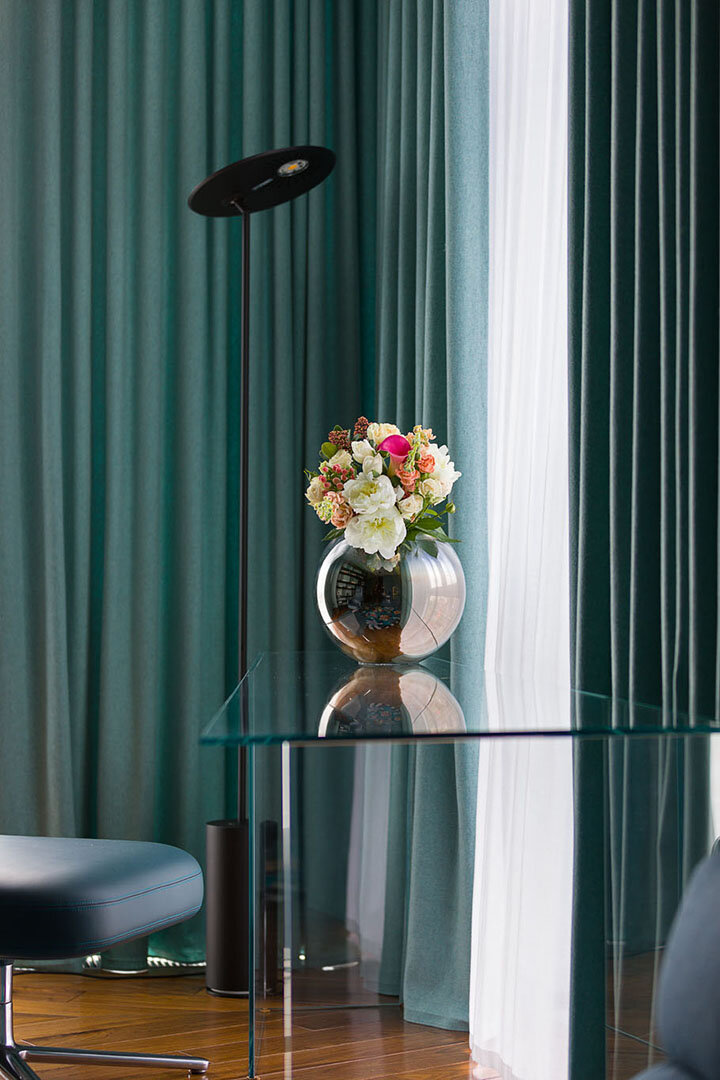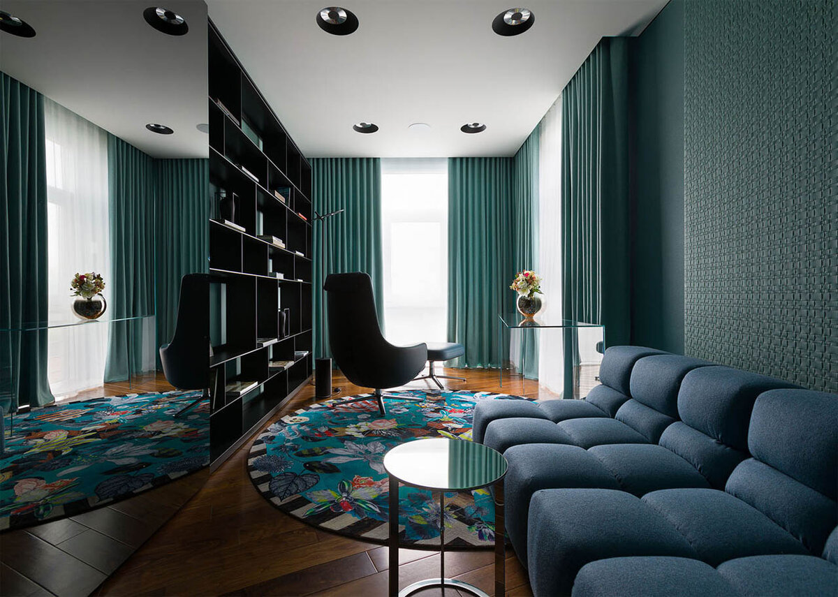 Стильное цветовое решение, при котором каждое помещение имеет собственную палитру и при этом пространство воспринимается законченным и единым, легло в основу этого проекта. А тщательная работа с планировкой, использование натуральных материалов и виртуозно подобранный декор довершили создание современного и оригинального интерьера. Стильные интерьеры живут по ссылке: https://archidom.ru/projects/ В распоряжении Юрия Зименко оказались просторные двухэтажные апартаменты в центре Киева. Чтобы получить тот результат, о котором мечтали заказчики – в частности, две детские и гардеробные комнаты, над планировкой пришлось немного поработать, но в итоге все помещения расположились логично и удобно. Что же касается главного «наполнения» этого проекта, им, безусловно, стал цвет. Юрий Зименко любит и умеет работать с цветом, а в данном случае к этому прибавилось еще и желание заказчика. У каждой комнаты в апартаментах появился свой цветовой характер. Гостиная наполнилась голубыми тонами, кото