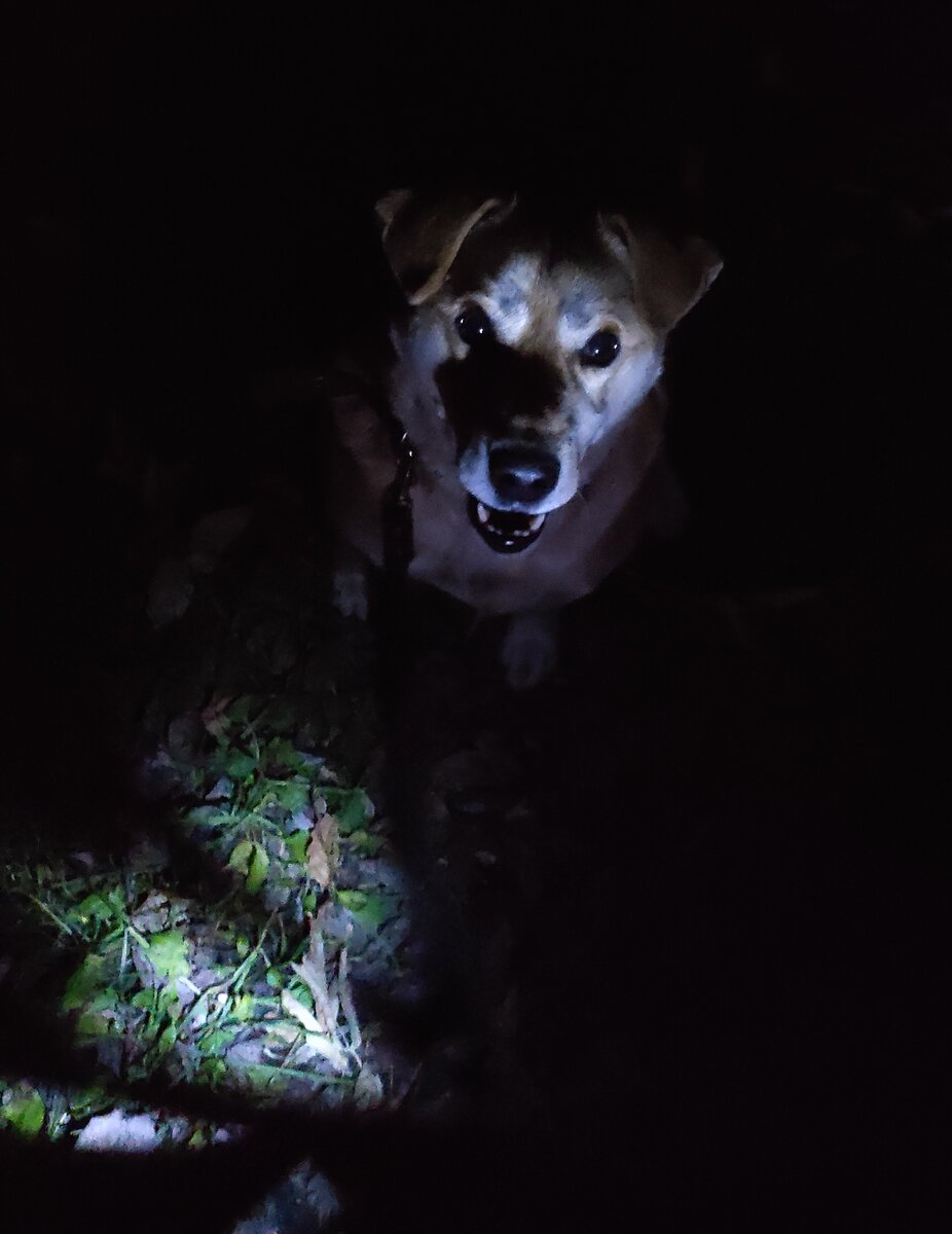 Начало темнеть, и наш инструктор повесила яркий фонарь. Света хватало, и я различала людей и собак. Я рассыпала колбасу. В самом начале, когда сняла рюкзак и положила под ёлку, а потом оттуда брала пакетик с колбасой, чтобы положить в карман. Тунгус её быстро ел, но ка