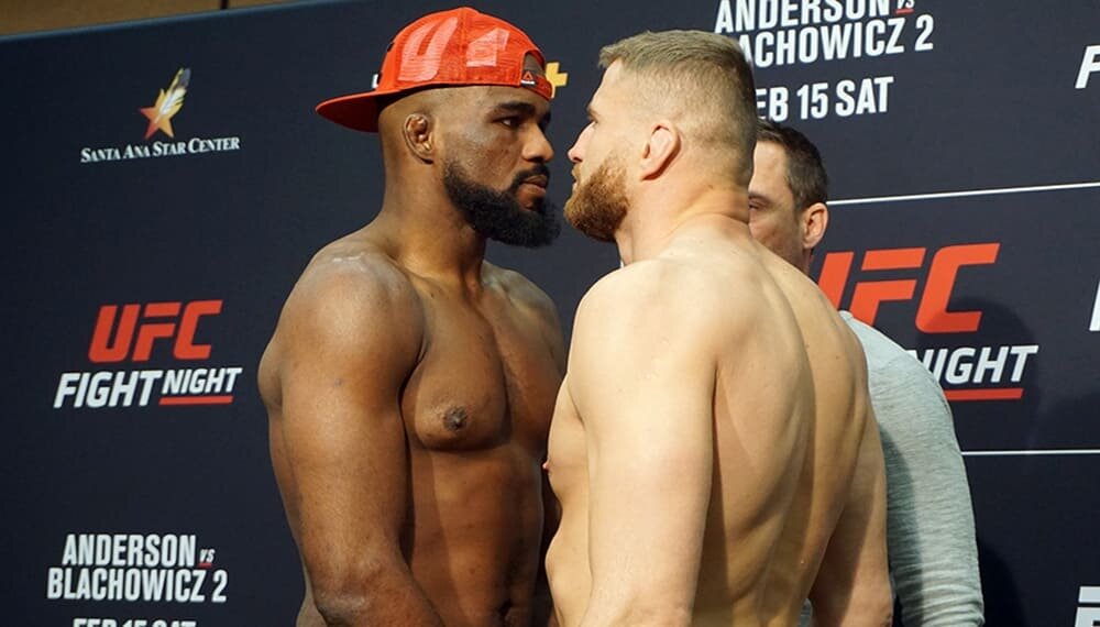 Основные поединки Кори Андерсон (205) – Ян Блахович (206) Мичел Перейра (170) – Диего Санчес (171) Мара Ромеро Борелла (125) – Монтана Де Ла Роса (126) Родриго Варгас (156) – Брок Уивер (156) Роджерио Бонторин (126) – Рей Борг (128)* Янси Медейрос (155) Предварительные поединки Тим Минс (1 71) – Даниэль Родригес (171) Джон Додсон (133.5) – Натаниэль Вуд (136) Скотт Холцмен (156) – Джим Миллер (156) Девин Кларк (205) – Декуэн Таунсенд (202) Мераб Двалишвили (136) – Кейси Кинни (135.5) Мэйси Чиассон (135) – Шэнна Янг (134) Марк Де Ла Роса (126) – Раулиан Паива (126) *Борг превысил лимит наилегчайшего дивизиона на 2 фунта