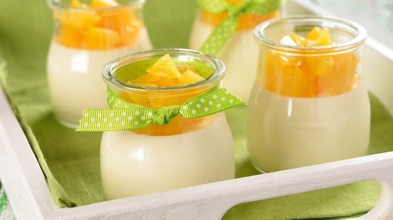 Ингредиенты: Большой апельсин — 1шт. Желток — 2 шт. Молоко — 75 г Сахар — 20 г Желатин —10 г Вода —100 г Приготовление: 1. С апельсина натереть цедру, чем больше, тем ароматнее будет 2. Выжать из апельсина сок 3. Замочить желатин в холодной воде на 10 минут. Через 10 минут добавить половину сока в желатин 4. Взбить желтки до светло-желтой пены 5. Вскипятить молоко, добавить цедру, сахар, дать провариться 2 минуты. Добавить оставшийся апельсиновый сок и ввести тонкой струйкой желтки. Варить не медленном огне 12 минут, постоянно помешивая. Цедра будет отдавать свой аромат. Дать немного остыть. 6. Желатин до конца растворить, очень удобно в микроволновке (200W 1 минута), но если микроволновки нет, то можно на водяной бане, главное не давать желатиновой смеси кипеть. 7. Смешать желатиновую смесь с молочно-апельсиновой заготовкой и разлить по формочкам (3 формочки объемом 80мл) Приятного аппетита!