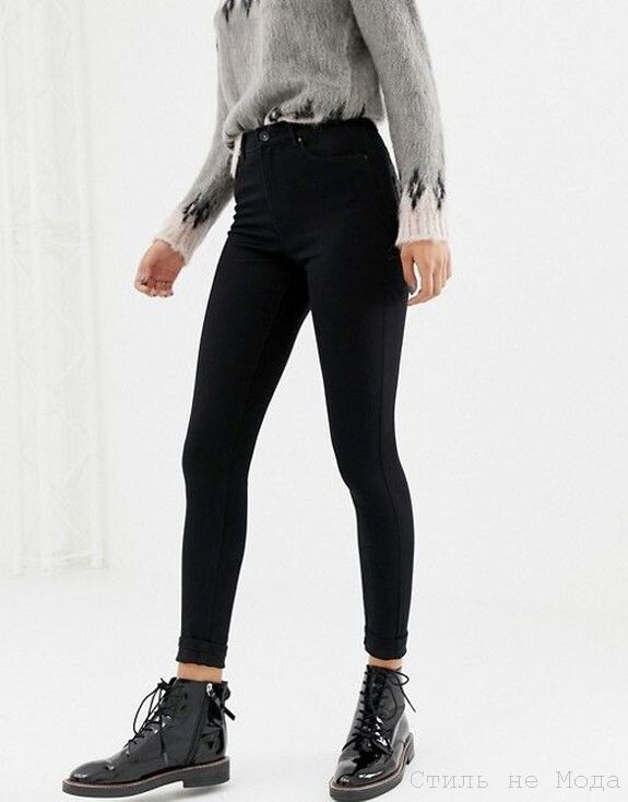 Обтягивающие джинсы с таким же верхом выглядят несуразно. Такой образ делает из вас глисту, что тоже не хорошо.