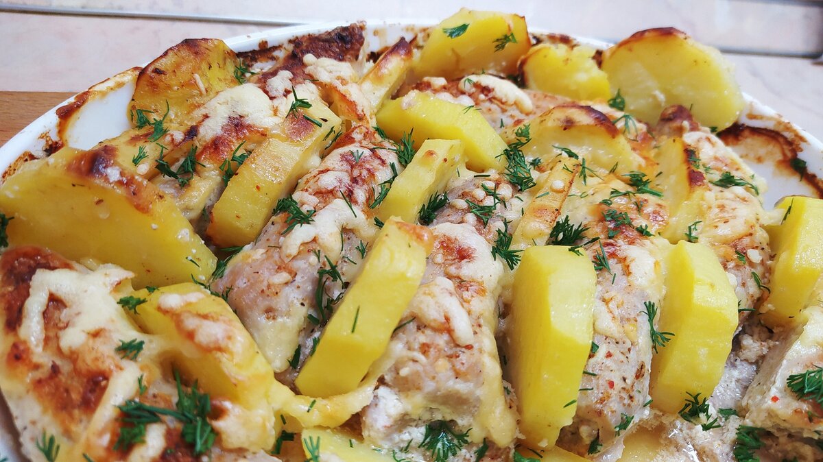 Меня сложно удивить каким либо блюдом, но эти мясные пальчики в сметане превзошли все ожидания - очень вкусно. Мясо получилось невероятно нежным и сочным. Аромат пряностей и чесночка идеально звучат в сочетании мяса и картофеля. Очень хочу поделится с Вами этим простым рецептом: Мясо для этого блюда подойдет любое, я выбрала свинину - балыковая часть, её удобно использовать для таких блюд. Мясо нарезала как на отбивные и отбила молоточком с двух сторон. Посолила и поперчила. На мое удивление в составе смеси перцев мне попались кориандр, тмин, горчица. Я не особый любитель специй, но этот состав сделал моё блюдо еще вкуснее. Аромат у этой приправы невероятный. Соус для мясных пальчиков: 100 грамм 15% сметаны 4 зубчика чеснока Соль по вкусу Всё перемешать. Мясо смазала соусом с двух сторон. Завернула рулетом и плотно уложила в форму для запекания. Между мясными рулетами уложила кружочки картофеля. Выпекала блюдо 1 час при температуре 200 градусов. При выпекании блюдо пустило сок - к