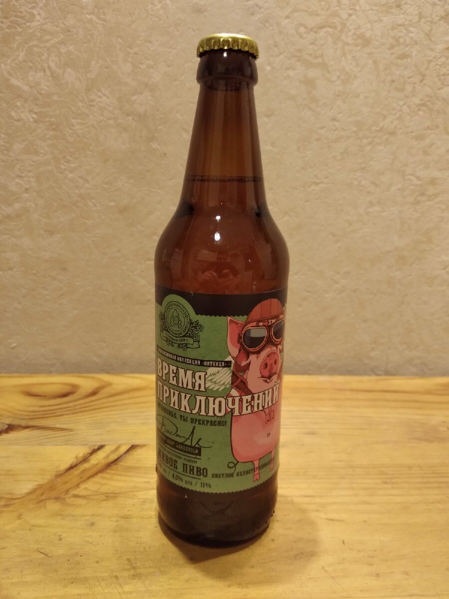 Приветствую друзья. Сегодня решил опробовать пиво "Время приключений" и поделиться с вами своим мнением. Бутылка 0,5 л. в супермаркете "Окей" обошлась мне в 54 рубля. Пиво выделяется своим названием и оформлением этикетке. Пиво из "знаменитой" эксклюзивной коллекции "Пятница", и как утверждает производитель сделано по секретному рецепту. На мой взгляд этикетка заполнена "визуальным шумом". Можно было сделать проще и лаконичнее. Пиво светлое, фильтрованное, непастеризованное. Производитель Кропоткинский пивоваренный завод, Краснодарский край, г. Кропоткин. Состав: вода, солод пивоваренный и ячменный, хмель гранулированный, пивные дрожжи. Экстрактивность начального сусла - 11%, алкоголь - 4,0 %. Цвет напитка золотистый. При наливание сильного образования пены не наблюдалось. Нейтральный запах хмели, без каких-либо изысков. Пиво не водянистое. Вкус напитка не пришелся мне по душе. Небольшая горечь в начале, и уже более сильная в послевкусие. Не чем не примечательный вкус, который вряд ли