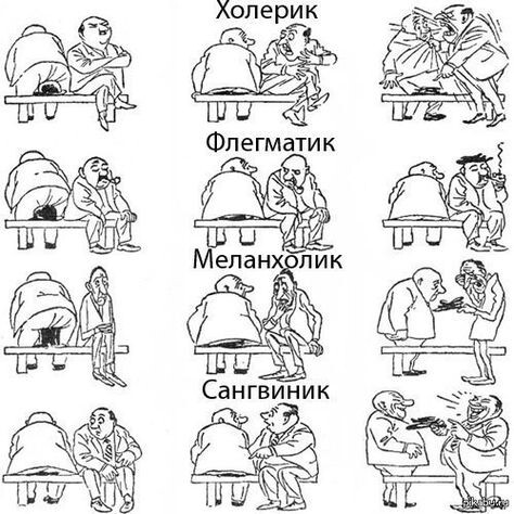 Что же представляет собой темперамент? Термин этот достаточно распространен, но часто понимается и употребляется неправильно. Если характер указывает на содержательные характеристики внутреннего мира человека (эгоистичный, властный, объективный и т. д.), то в темпераменте, прежде всего, отражается динамический аспект поведения. Еще во II в. до н. э. врач Клавдий Гален выделил четыре типа темперамента: сангвиник (в переводе с греческого "кровь"), холерик (от греческого "желчь"), флегматик ("слизь") и меланхолик ("черная желчь"). В отличие от Галена, объяснявшего темперамент особенностями обменных процессов в организме, другой не менее известный исследователь Кречмер проводил параллель между темпераментом и типом телосложения. Павлов обратил внимание на зависимость темперамента от нервной системы. Он выделил четыре типа нервной системы: сильный, уравновешенный, подвижный (у сангвиников); сильный, неуравновешенный (у холериков); сильный, уравновешенный, инертный (у флегматиков); слабый