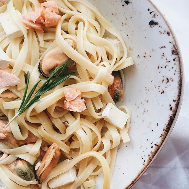 Если вы хотите порадовать своих родных вкусным ужинам, то рекомендую к прочтению данную статью. Существует множество рецептов приготовления пасты, но сегодня я хочу поделиться с вами одним из моих любимых. Само приготовление пасты очень лёгкое, а получается нереально вкусно! Итак, для приготовления пасты с морепродуктами нам понадобится: макароны( спагетти или любые другие)(200 г) шампиньоны(100 г) Ассорти из морепродуктов(на ваш вкус и выбор)(100 г) соль и специи(по вкусу) сливки(от 10 до 20%, нас понадобится пол кружки) Приготовление: Для начала варим макароны по инструкции на упаковке. Дальше обжариваем шампиньоны до золотистой корочки. К грибам добавляем ассорти из морепродуктов. Потом соль и специи по вкусу. Заливаем сливками, перемешиваем и добавляем макароны. По желанию можно потереть сыр. Готовится легко, а получается безумно вкусно! Обязательно воспользуйтесь этим несложным рецептом и он приятно удивит вашу семью. Спасибо , что дочитали эту статью, надеюсь она вам приго