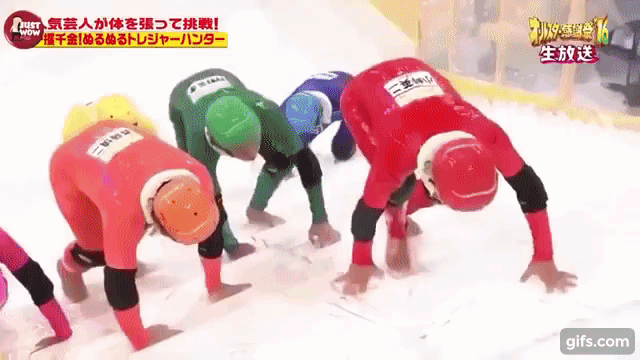 В Японии часто появляются идеи, которые для нас кажутся очень странными и смотреть на них без смеха или стыда не всегда можно. Все эти странные идеи распространяются и на их телешоу. Одно из этих трешовых шоу называется «Скользкая лестница». Задача соревнующихся людей, в смешных обтягивающих костюмах, добраться до верха лестницы и забрать вознаграждение, для усложнения этой задачи сверху лестницы беспрерывно льют какую-то слизь, мешающую соревнующимся добраться до приза, в этот момент за ними следят множество зрителей, знаменитостей и судей. Не каждый день можешь увидеть такие телешоу. Такие телешоу можете похвастаться только Японское телевидение. Каково ваше мнение об этом телешоу, хотели бы увидеть такую телепередачу на нашем телевидении. Мне бы хотелось увидеть такое шоу по телевизору. Не забудьте поставить лайк и написать свое мнение в комментариях.