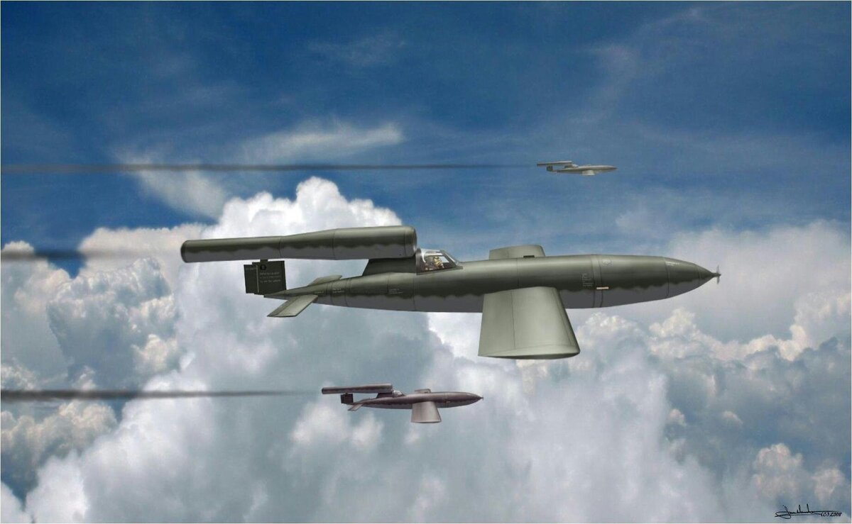 В самом конце войны было изготовлено несколько пилотируемых «Фау-1» (так и не использованных), предполагавших подъём в воздух на тросе, с использованием реактивного Ar 234 в качестве буксировщика.