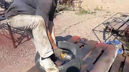 Команда из Белоруссии занимаются разработкой промышленной установкой по переработке ТБО, пластика, шин. На стендовой пиролизной установке тестируют печь и переработку покрышек в печное топливо. Разрезаем автомобильную покрышку перерезая металлический корд. В шине есть текстильный и металлический корд. Взвешиваем сырье и помещаем покрышку в реторту пиролизной печи. Мини тестовая пиролизная установка для лабораторных исследований Зажигаем печь нагреваем реторту с сырьем. При выходе установки в рабочий режим дым из трубы исчезает, печь греется на газе который вырабатывает установка. Водяной затвор показывает, что печь греется и идет пиролизный газ. Начинаем сливать продукты пиролиза из емкости в установке. Пробуем зажечь. Жидкость получается близкой к бензиновой фракции. Сливаем все продукты пиролиза из установки в разные емкости. Все содержимое взвешиваем и делаем выводы по готовым результатам. Достаем все остатки из реторты печи, разделяем их и взвешиваем. Достаем оставшийся металлоко