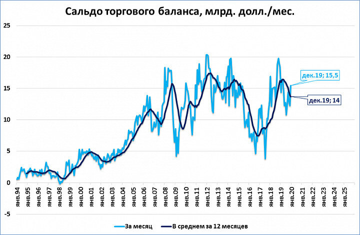 Сальдо торгового баланса в декабре 15,5 млрд. долларов (-16%)