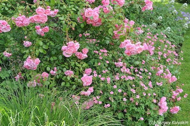 Хочу рассказать о моих любимых геранях и о том, как использовать их в саду. Внимание! Это дайджест. Если хотите прочитать заинтересовавшую вас статью целиком, кликните синий заголовок, и статья откроется в новом окне. На юбилейном, сотом Цветочном шоу в Челси-2013 всей Британией выбирали растение века. Им стала герань 'Rozanne' со скандальной историей и массой достоинств при полном отсутствии недостатков. Родина герани крупнокорневищной – Альпы, Апеннины, Карпаты и Балканы, отсюда и второе ее название: герань балканская. А в самой Болгарии, где этой герани несть числа, ее называют просто: здравец. Отдельные популяции герани крупнокорневищной натурализовались по всей Европе. Кустик достигает 30-45 см в высоту; опушенные листья более-менее округлой формы и слегка разрезаны. Итак, 10 фактов об этой герани. Садовая герань многолика: сотни видов и тысячи сортов дают садовнику с фантазией богатый выбор практически в любых ситуациях. Садовые герани разнообразны и пластичны - люб