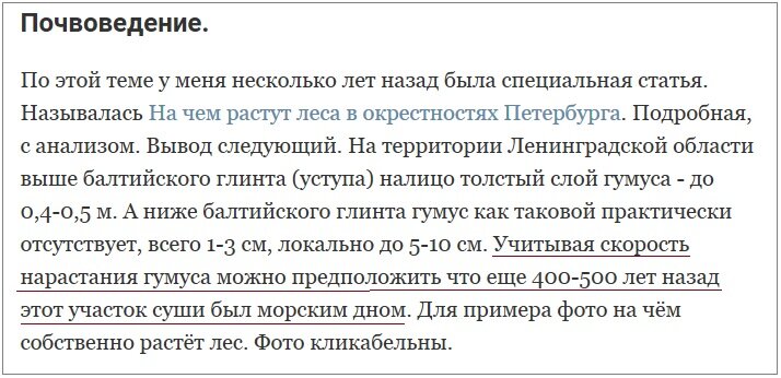 То есть, почва должна была образовываться первоначально из материалов (и на них) пород глинта и материалов ледниковых отложений. Около месяца назад я смотрела ролик археолога Павла Колосницина о том, как образуется культурный слой. И для меня стала откровением его фраза о том, что почва растёт сверху вниз (я же не всё-всё знаю). Сейчас, видимо, пришло время изложить усвоенные за это время знания и разширить их :о) Итак, почва образуется не на пустом месте и неразрывно связана с геологией местности.