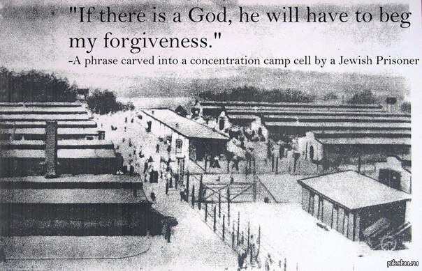 "Если Бог существует, то ему придётся умолять меня о прощении" - надпись, вырезанная на стене в одной из камер узником концлагеря.