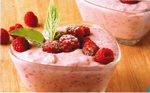 время приготовления 5 минут калорийность ■■■ Ингредиенты на 2 порций: творог 200 г сметана 3 ст. ложки малина 100 г сахар 2-3 ст. ложки Приготовление: Творог взбейте миксером до кремообразной консистенции, добавьте сметану, сахар и взбивайте еще минуту. Положите малину и взбивайте все вместе еще 30 50 секунд. При подаче оформите ягодами.