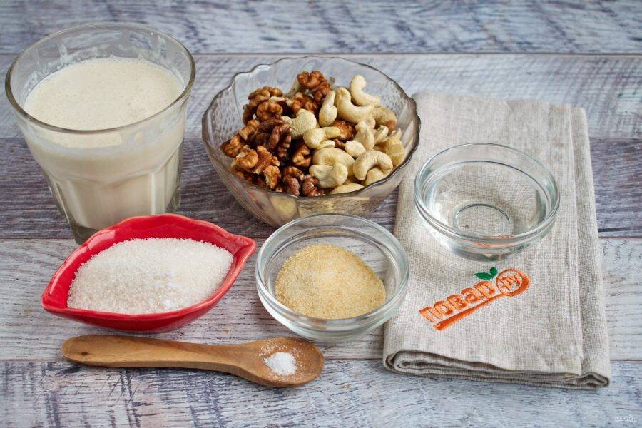 Нежное, в меру сладкое, сытное желе из сливок и кешью. Этот десерт обладает приятным сочетанием сливочного и орехового вкуса. Подойдет для семейного чаепития или девичьих посиделок. Не забудьте подписаться на канал Ингредиенты: Сливки 20%- 250 миллиметров Орехи- 100 грамм, кешью, грецкие Вода горячая- 50 миллиметров Желатин быстрорастворимый- 15 грамм Сахар- 2 ст. ложки Ванилин- 1 щепотка Приготовление: Подготовьте необходимые продукты. Быстрорастворимый желатин замочите в горячей воде. Орехи просушите в течение 5 минут в духовке при 100 градусах. Остудите. Измельчите в блендере в мелкую крошку. Влейте 3 ст. л. сливок, пробейте до однородной густой массы. Оставшиеся сливки доведите до кипения. Добавляя ореховую массу по 1 ст. л., размешайте венчиком. Замоченный желатин размешайте, влейте в орехово-сливочную смесь. Добавьте сахар, перемешайте. Разлейте по силиконовым формочкам, остудите до комнатной температуры Поставьте в холодильник на 2 часа, до полного застывания. Приятного аппе