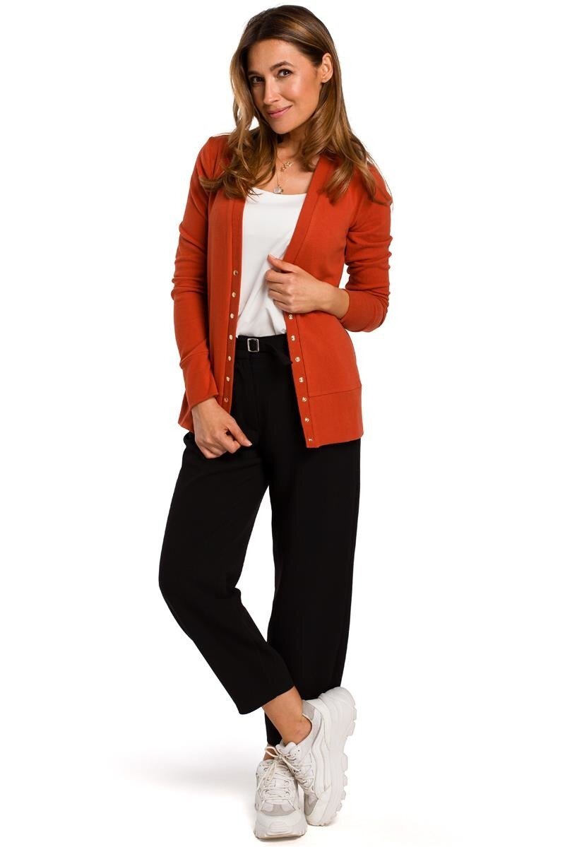 завышенной талией, фасоном палаццо. Чем так хороши короткие кардиганы - они создают правильные пропорции тела 1:3. С ними любые брюки визуально удлиняют ноги. Расцветку верха нужно подбирать, исходя из цветотипа женщины и конкретного комплекта. Беспроигрышный вариант - природные оттенки серого, бежевого, нюдовые. Короткий кардиган с платьями и юбками Короткая длина трикотажного верха хорошо смотрится с платьями длины миди, джинсовыми или летящими юбками выше или ниже колена. Платья классического кроя, отрезные по талии, платья-комбинации, платья с пуговичной планкой - для них укороченный кардиган
