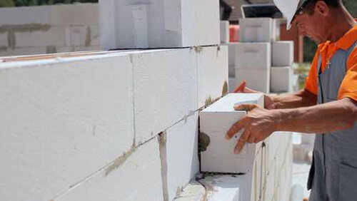 1. Блоки для основных стен – конструкционные, весят от 20 до 40 кг, полублочные изделия выпускаются весом от 10 до 16 кг. Этот материал предназначен для кладки жилых домов, общественных зданий и промышленных сооружений и маркируется D 1000 – D 1200.