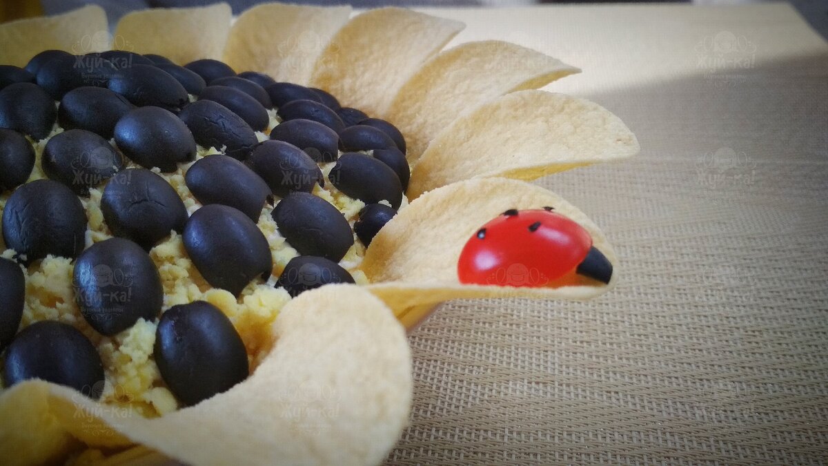 На носу 8-ое марта! Готовим нарядный весенний салатик, который порадует своим вкусом вас и ваших близких!:) Ингредиенты: · Куриное филе – 300 грамм · Сыр твёрдый - 150 грамм · Морковь – 200 грамм · Яйца - 4 штуки · Лук репчатый красный – 1 небольшая штука · Маслины без косточки - 100 грамм · Чипсы картофельные – 15 штук · Помидоры черри - ½ штуки (по желанию) · Майонез - 4-5 столовых ложек · Растительное масло - 2 столовые ложки · Соль, перец - по вкусу Способ приготовления: Отвариваем яйца и морковь. Кстати, это можно сделать с вечера. Куриное филе нарезаем кусочками небольшого размера. Солим, перчим. Хорошо разогреваем сковородку с растительным маслом. Обжариваем курицу с закрытой крышкой до готовности (примерно 25 минут): Даём курице остыть, а сами в это время займёмся луком. Нарезаем его мелкими кубиками и обдаём кипятком (для того, чтобы ушла излишняя горечь). Возвращаемся к курице. Нарезаем её на бол