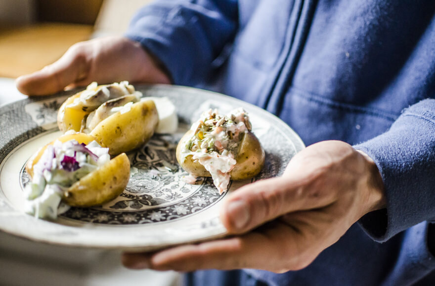 Предполагалось, что это будет воскресенье: « Я открываю глаза в 9:00, ложусь до 19:00 с перерывами на еду ». Это должно было быть воскресенье, типа « сделай мне сосиски и подай кусок пирога ». Но около 11:30 одна мысль начала проникать в мой мозг. Запеченный картофель. С чем-то. Запеченный картофель с чем-то хорошим. Потому что знаю, что я действительно люблю есть. Еда доставляет мне огромное удовольствие, успокаивает мою душу. И глазами моего воображения я уже видела эту огромную картошку, КАРТОШКУ, разрезанную пополам и наполненную чем-то, что растворяет каждое ожесточённое сердце и то, что может подкупить каждого. Но на балконе, в большой синей мешковине, у меня была только картошка. Ну, малышки. Это ослабило мой энтузиазм? Ничто не может быть более неправильным! Если вы думаете, что печёный картофель - это такая пресная еда, которая летом может быть вкусной в сельской местности, но в январе в большом городе - это так себе идея, то вы ошибаетесь. И я докажу это через минуту. Сейча