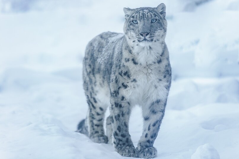 Снежный барс, снежный леопард, ирбис или снежный кот – так называют это крупное хищное млекопитающее семейства кошачьих. Относится снежный барс к подсемейству больших кошек и выделен в отдельный род – ирбис (Uncia uncia), хотя по другой классификации его относят к роду пантер (Panther uncia). На сегодняшний день в дикой природе по разным подсчётам осталось от 4 до 7 тысяч особей снежного барса. Да, к сожалению, эти красавцы находятся на грани вымирания. Снежный барс – одна из наименее изученных диких кошек. Это следствие того, что сегодня они обитают в основном в труднодоступной горной местности. Но немного интересных фактов о них мы всё-таки знаем: Снежный барс – кошка довольно крупная. Её вес может достигать 50-60 килограмм, что меньше, чем африканский или дальневосточный леопард, но при этом это очень сильное животное, способное охотиться на вдвое превышающую его самого добычу. У них очень длинный хвост. Вместе с ним общая длина животного достигает 230 см! Снежные барсы невероя