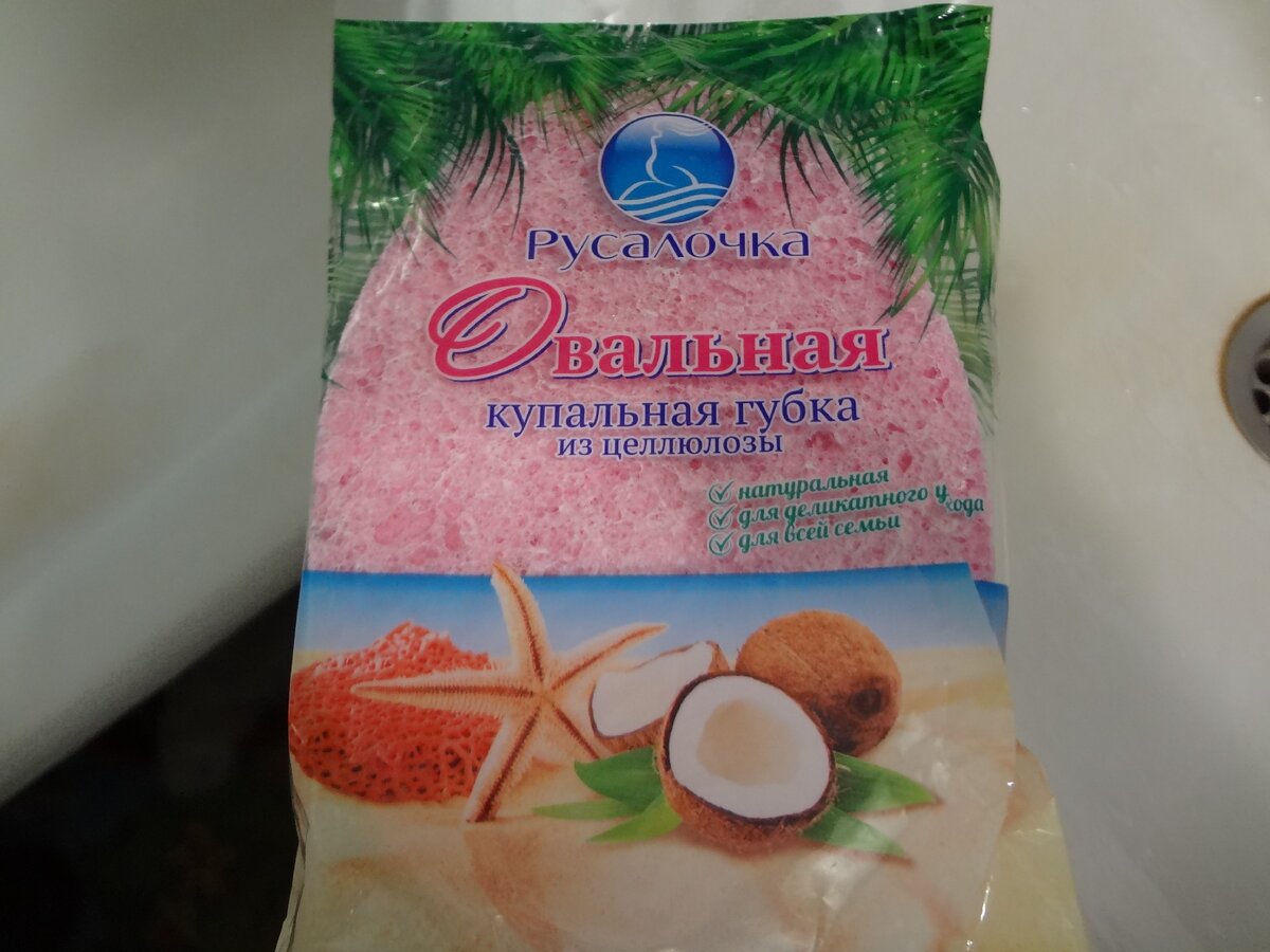 Нужна была нам новая губка для мытья тела и очень хотелось не двухслойную, где второй слой крошится, через несколько раз её применив, и отваливается кусками, а что-то качественное и надолго. Однажды я зашла в ближайший "Магнит-косметик" с целью купить хорошую губку и на полочке увидела её. Осмотрела губку, прочитала состав, её свойства и сделала вывод, что её-то я и искала. В магазине она стоила 119 рублей. Рядом лежала та самая двухслойная, дешёвая, за 60 рублей, которую я всегда покупала (пока не встретила её). Она натуральная, из целлюлозы. Это огромный плюс. Однослойная, не будет крошиться. Купила губку для всей семьи, которая нам очень понравилась. Дома попробовали помыться ей и вот моё мнение о ней. Да, действительно, очень мягкая губка, приятная и эластичная. Она прекрасно вспенивает гель для душа и деликатно очищает кожу. Очень удобная в применении. После мытья, мы её хорошо отжимаем и она хорошо высыхает, благодаря тому, что изготовлена из натурального материала. Мылись мы