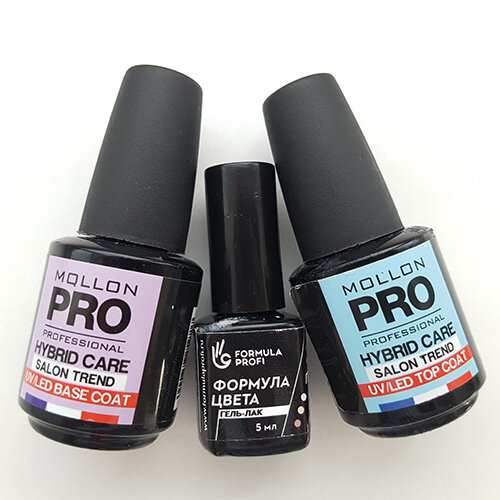 Сначала наносим базу и цветное покрытие. Сегодня мы выбрали нежно-розовый гель-лак "Формула профи" (оттенок 705).