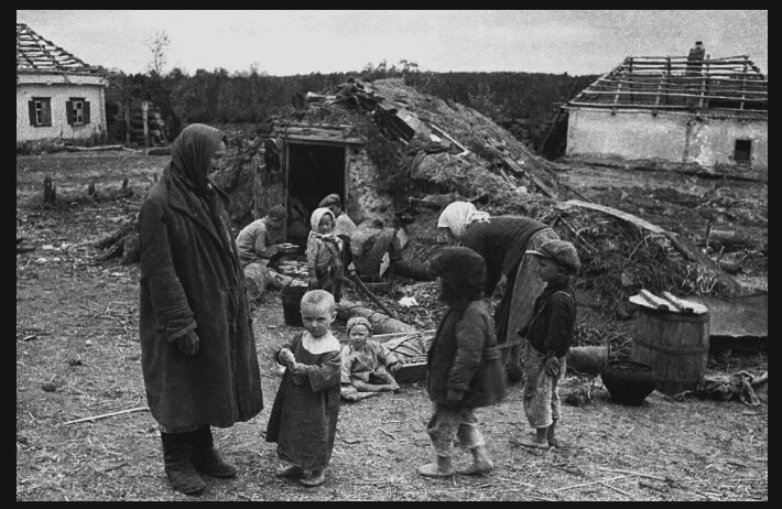 И вот, как все знают, в 22 июня 1941 года она началась. Жить становилось тяжелее. Мужчин в деревне не осталось. Остались только старики, в том числе и мой дедушка Иван, с которым я жил (мне было на тот момент 6 лет). Таких стариков было не более 3-4 человек и хромой Василий. Ему перед уходом на фронт мой дядя Александр оставил печать. И тот руководил колхозом, его никто не выбирал.