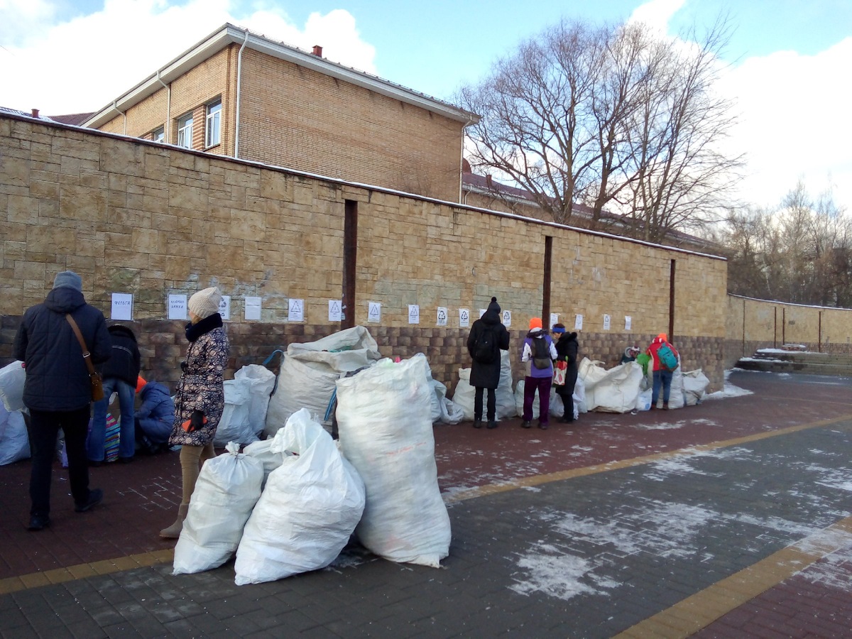 Месяц назад во время прогулки с детьми обратила внимание на толпу людей на одной из площадей нашего подмосковного города, которые что-то активно делали около стены с наклеенными на ней бумажками. Рядом стояли большие мусорные пакеты. Подошла поближе - поняла, в чём дело, и решила тоже попробовать поучаствовать. На самом деле давно собираю макулатуру (старые детские рисунки типа каля-маля) и батарейки, но избавляться от этого хлама приходится от случая к случаю. Нашла группу по Раздельному сбору мусора нашего города в одной из социальных сетей, и нашла там всю необходимую мне информацию. В нашем городе Раздельный сбор производится 2 раза в месяц - по субботам с 11 до 14 (тогда ещё подумала, что главное - не прозевать очередное время сбора, а то с накопленным мусором придётся жить месяц). Решила начать с Добрых Крышечек - это пластиковые крышки от любых напитков. За неделю сбора получилось вот что: Мы употребляем много бутилированной воды, поэтому решила заодно собирать остальной пластик